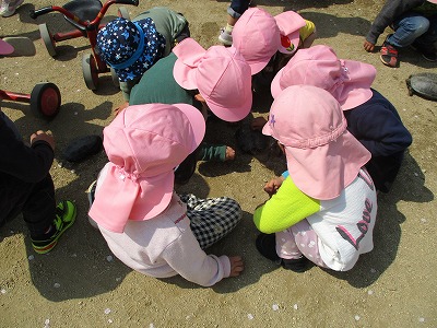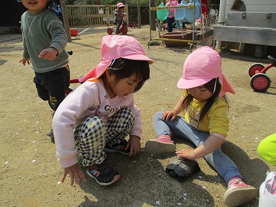 2020年04月08日 カメの水替え お手伝い 3歳児 つき 朝の集まりの後の外遊びを満喫しています。砂場や三輪車が人気です。 担任が今日と明日とカメの水替え当番なので、こどもたちと一緒にしました。 水槽を洗っている間のカメの散歩を見守るのはこどもたちの仕事です。 カメも暖かくなり、広々と散歩するのが嬉しそうです。 カメ見守り隊 取り囲まれてカメさん困った カメをそっと触ってみたよ 一覧へ戻る