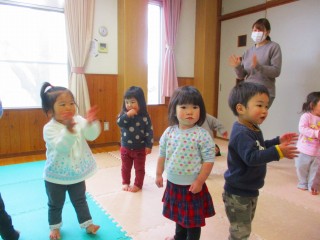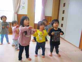 保育者の動きを見ながらすぐにマネっこしていたこどもたちです。