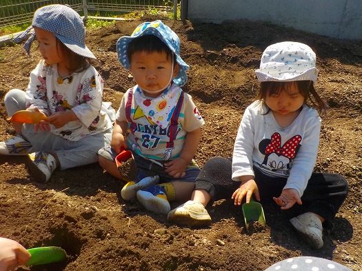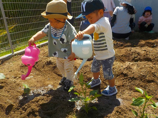 2020年05月11日 大きくなあれ 1歳児 ゆき 今日は畑に野菜の苗を植えました。ゆき組はきゅうりとパプリカです♪スコップで土をほりほり!勢いあまって、バサーっと後ろに土がとんでいき「あ~」とびっくりな表情のこどもたちです。苗を植え、水やりも喜んでやってました。大きくなるのが、楽しみですね。 一覧へ戻る
