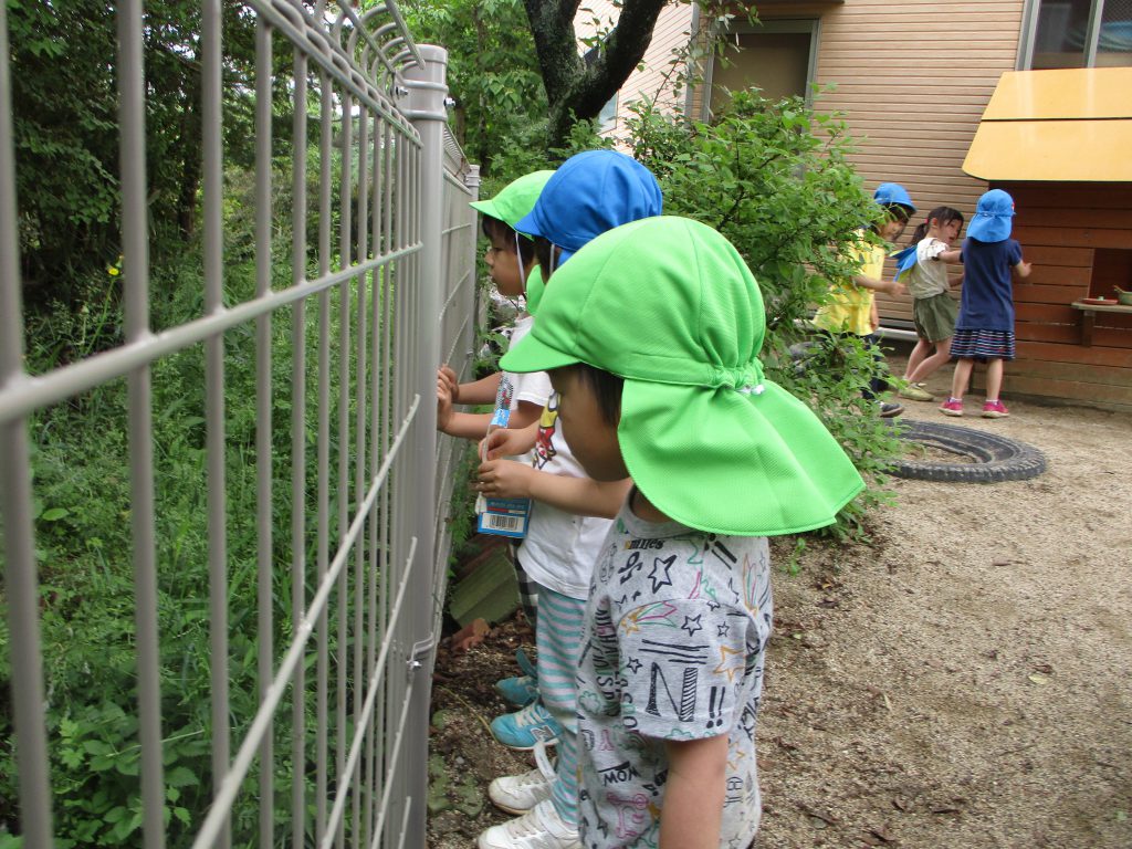 2020年05月19日 み~つけた! 4歳児 ほし 暖かくなり、園庭にはいろいろな虫が姿を現しています。 「虫、見つけたよ」と虫探しに夢中なこどもたちは、友だちに知らせては一緒に観察を楽しんでいます。 こどもたちがフェンス越しに何かを眺めているなあ…と思ったら、 なんと、フェンスの向こう側にカタツムリを発見。 大人ではなかなか見つけられないところに居る虫も、こどもたちにはすぐに見つかってしまうようです。 一覧へ戻る