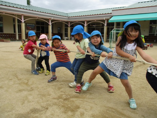 綱が出てくると、「綱引きしたい」と集まってくるこどもたち。