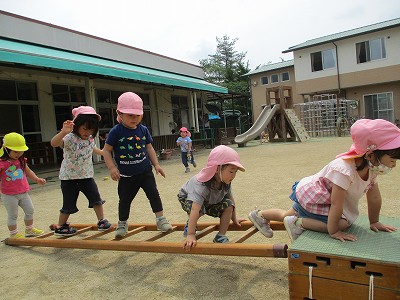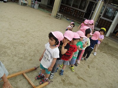 2020年05月27日 順番にできるかな 3歳児 つき 巧技台をつなげて橋渡りをしました。はしごのところは四つんばいでも立ったままでもOK。みんなバランスをとりながら、だんだん立ったままで渡っていました。 一本橋は横歩きをする子はほとんどおらず、まっすぐゆっくりと進んでいました。 みんなやりたくて順番が待ち遠しいこと。〇〇さんの次は△△さんと言い合いながら待つことができました。 バランスを取りながら落ちないように気をつけて…。 大行列ですが、名前を呼ばれるまで待っています。 一覧へ戻る