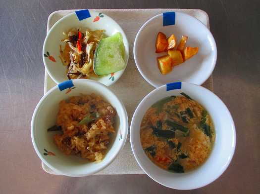 にら入りの卵のみそ汁は特にこどもたちに人気でした。
