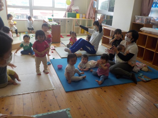 2020年05月29日 一緒に遊んだよ 0歳児 はな 1歳児 ゆき はなぐみ、ゆきぐみで一緒にダンスをして遊びました。 見つめあったり、リズムに乗っている友だちの姿を見たりとこどもたちなりに交流をしているようでした。 また一緒に遊ぼうね。 一覧へ戻る
