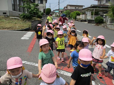 道路を渡る時は、 みーぎ、ひだり、、手もピシッとあがっていて素敵だね。