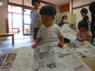 広げた新聞紙を真剣な表情で見つめている子もいました。
