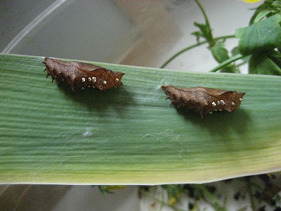 2020年06月15日 ツマグロヒョウモン その2 くじら(事務室) おいしいはっぱをたくさんたべて おなかのぐあいもよくなりました もう はらぺこでは なくなりました まもなく ツマグロヒョウモンはさなぎになって なんにちもねむりました おなかに キラキラとした模様があり きれいなさなぎです 一覧へ戻る