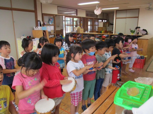 2020年06月19日 誕生会に向けて 5歳児 そら 明日の誕生会に向けて、楽器の練習をしました。 タンバリンとカスタネットの2つから自分の好きな方を選び、“ながぐつマーチ”のうたに合わせて演奏しました。 音を鳴らすタイミングもバッチリ! 誕生日の友だちに喜んでもらえるといいね♪ 一覧へ戻る