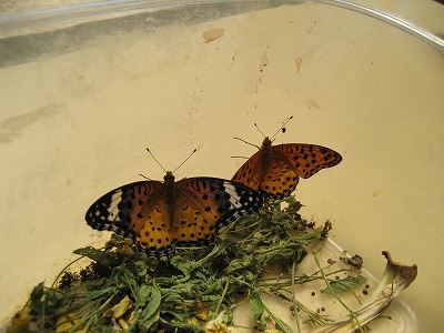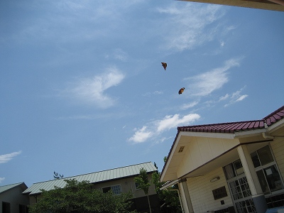 2020年06月22日 遂に… 飛び立ちました くじら(事務室) ツマグロヒョウモンが、さなぎの皮を破り、ついにちょうになりました。 大きくきれいな羽を広げ、2匹寄り添いながら空高く飛んでいきました。 一覧へ戻る