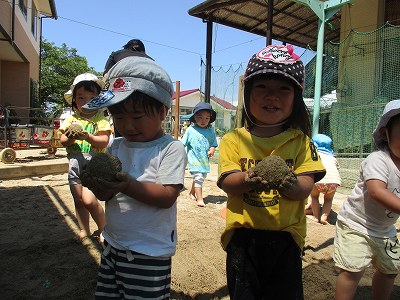 2020年06月27日 どろんこ 2歳児 にじ どろんこをしてあそびました。 砂場に行き、穴を掘ったり、どろだんごを作ったりしました。 どろだんごを持って、嬉しそうに友だちに見せています。 これからもどろんこ、水遊びを楽しみ、夏を乗り切ろうと思います。 一覧へ戻る