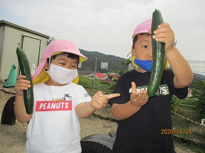月曜日のキュウリは1本、そら組にもおすそ分けです。