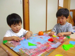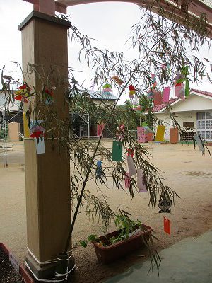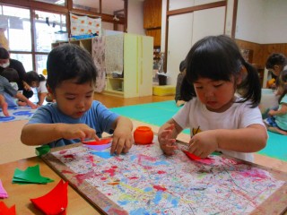 2020年07月06日 ささのは さらさら~♪ 2歳児 にじ 明日は七夕ですね。 にじ組は七夕飾りの三角つなぎを作りました。 初めてのりを使いましたが、最初にのりは少しつけることと 三角の山のてっぺんにのりを塗ることを伝えると よく話を聞いていて、上手に作っていました。 にじ組テラス前の笹に飾っているので、送迎時に お子さんと一緒に見てみてくださいね。 明日も雨予報ですが、織姫と彦星は無事会えるでしょうか? こどもたちの願い事も叶いますように。 一覧へ戻る