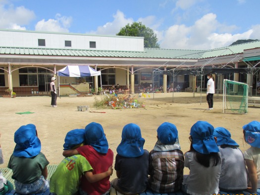 2020年07月09日 思いよ届け! 5歳児 そら 久しぶりに晴れたので、笹を囃しました。 笹に火がつくと、「神様お願い!ぼくの願い叶えて!」と手を合わせて目をギュッとつむり、そらの神様にお願いするこどもたちです。 みんなの願いが届きますように☆ 一覧へ戻る