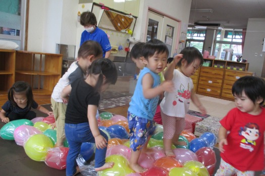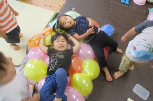 2020年07月15日 風船ベッド 1歳児 ゆき 風船を圧縮袋に入れて風船ベッドを作りました。 ベッドに飛び乗り、ジャンプしたり寝転がったり、ふわふわする感触を楽しみました。 圧縮することで、中の風船も割れずらくなっています。 ふとん圧縮袋から風船を出すと、みんな一つずつ持ってきていました。 片付けも上手です♪ 一覧へ戻る