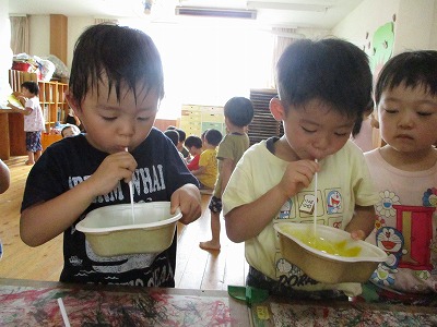 〝泡写し″という技法を使ってかき氷をつくりました。