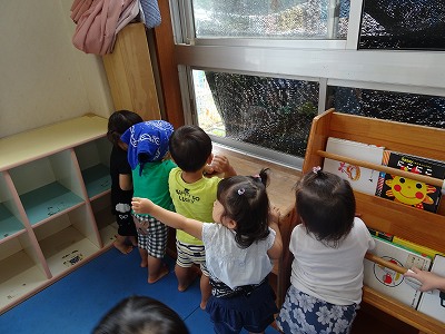 2020年08月06日 おった! 1歳児 ゆき 保育室で「おった!」と言っている指先の方を見てみると、 窓の外にクモがいました。風で揺れているクモに「あ!」と指さしながら揺れていることを知らせています。 普段、小さな虫でも発見すると「むし!」と大きい声で知らせています。 みんなでじっと眺めている後姿がとてもほっこりします。 一覧へ戻る