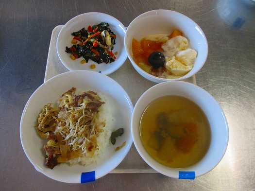 給食も誕生会メニューということで、食べごたえたっぷりの焼き肉丼や、