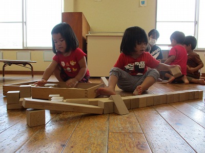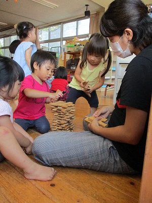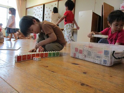 にじ組にはない珍しい玩具に目を輝かせていたこどもたちです。
