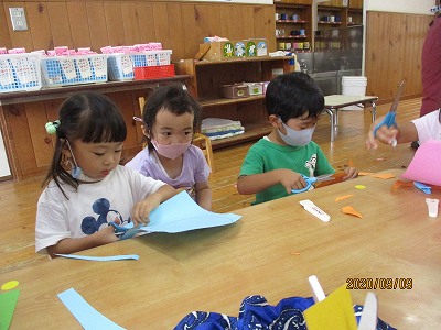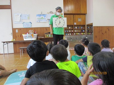 2020年09月11日 キャラバンがあったよ 3歳児 つき 早寝早起き朝ごはんのキャラバンがありました。 朝早く起きてるかな?遅くまで起きていないかな?朝ごはんは食べているかな? ○朝は7時までに起きる ○夜は9時までに寝る ○朝ごはんは食べる (大体の目安) この約束を守って、元気に過ごそうね♪ その後は、ハサミで月見団子を切りました。以前も丸を切ったことがありますが、そこからの成長にびっくり!!!丸の線を意識して、線の上を切ることができている子がとても増えていました。 また保育室の壁に貼っておくので見てみてくださいね♪ 一覧へ戻る