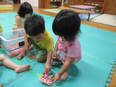 2020年09月11日 つなげれるよ 2歳児 にじ リングのおもちゃであそびました。 初めてだったためか一斉に集まるこどもたちです。 いろいろな色があるため、自分たちで好きな色を見つけながらつなげていました。 一覧へ戻る