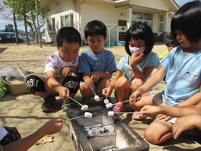 そらぐみは、七輪を囲って串にマシュマロを刺して一人ひとつじっくり