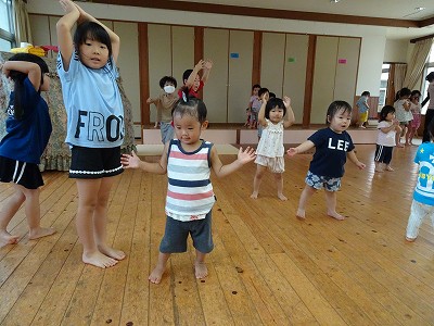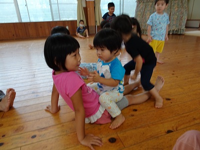 2020年09月24日 ダンス♪ 1歳児 ゆき 「ダンスしよ」と曲をかけると、身体が自然と動くこどもたちです。 大人のマネをしながら、手や足を動かして踊っています。 ホールで踊っているとそらぐみがやってきました。 ”バスに乗って揺られている”ではそらぐみの膝に乗って嬉しそうに揺れていました。 お兄ちゃんやお姉ちゃんと一緒に遊べて楽しかったね。 一覧へ戻る