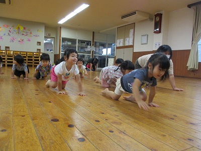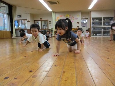 2020年09月24日 よーい、どん! 2歳児 にじ あいにくの雨だったのでホールに行って ハイハイレースをしました。 ホールの端に並び「よーい、どん!」のかけ声で 反対の端を目指してハイハイで進んで行きます。 何度も往復して遊んでも疲れ知らずのこどもたちに対して、 一緒にハイハイしていた保育者はくたくたなのでした。 こどもたちの体力はすごいです。 一覧へ戻る