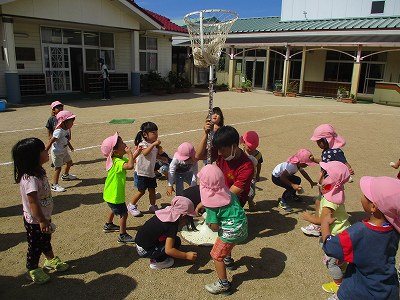 2020年09月30日 たのしいな~♪ 3歳児 つき そら組とほし組の運動会のお披露目を見せてもらった後、つき組も運動会ごっこをしました! まずはかけっこです♪ かけっこドン!の掛け声とともに走り出し、上手にコーンでUターンできています。走り切った顔はニコニコ♪ 初めての玉入れでしたが、9個も入りました。すごい。 これからも少しずつ運動会ごっこを楽しめたらいいなと思います。 一覧へ戻る