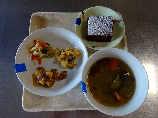 2020年09月30日 給食室(9月28日の給食、おやつ) 給食室 昼食 ・ごはん ・肉豆腐 ・切干大根の煮物 ・小松菜とえのきのポン酢和え ・なすのみそ汁 おやつ ・ブラウニー ・牛乳 29日の昼食は和食でした。 切干大根の煮物には、あさりと干ししいたけが入っています。 小松菜とえのきの和え物は、手作りのポン酢で味つけをしています。 おたのしみおやつはクルミの入ったブラウニーで、 こどもたちだけでなく大人にも好評でした。 一覧へ戻る