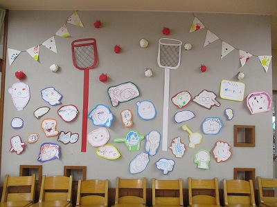 2020年10月02日 10月のホールの壁面の担当は、はな組とつき組です。 くじら(事務室) テーマは運動会の玉入れです。はな組は紙を丸めて赤玉と白玉を作りました。 三角の旗もはな組の描画です。 つき組は玉入れをする人を描きました。 先日、つき組は玉入れをして遊びました。今度、他のクラスともたのしみたいと思います。 赤かな白かな…どちらがたくさん入るかな? 一覧へ戻る