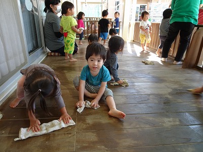 2020年10月08日 ピカピカになったよ 1歳児 ゆき テラスを雑巾がけしました。 手を動かし、雑巾でテラスを拭きます。 集中して拭き続けたり、テラスが終わると窓も拭いたりとカッコいいピカピカ隊 のゆき組でした。 一覧へ戻る