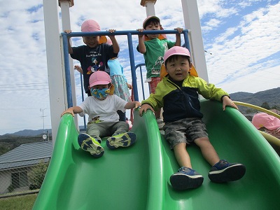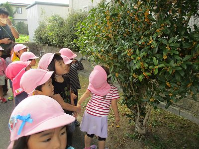 2020年10月07日 元気いっぱい♪ 3歳児 つき 虹公園まで散歩に出かけました。 今度の健脚に向けて、少しずつ距離を伸ばしているので歩く力も少しずつついてきているように感じます。 途中、転んでも自分で立ち上がり、たくましい姿も見られました。 公園では、すべり台が大人気。 何度も滑ったり、上に登って景色を楽しんでいたりしました。 バッタもたくさんいたので、追いかけてたくさん捕まえていました。 帰りには、なんだかいい匂い~♪ 食べてしまいそうなほど、顔をくっつけて、、、金木犀の香りに癒されたつき組さんです。 一覧へ戻る