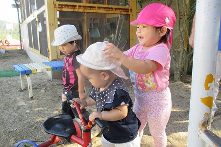 2020年10月12日 直してあげるね 0歳児 はな 1歳児 ゆき 帽子を落としていたはな組の子に、 ゆき組の子が、拾ってかぶせてあげていました。 異年齢児との関りが見られた瞬間でした。 ありがとう♪ 一覧へ戻る