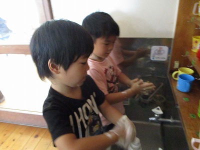 こども同士で手をきれいに洗おうと声をかけ合っている姿に、ほっこりしました♪