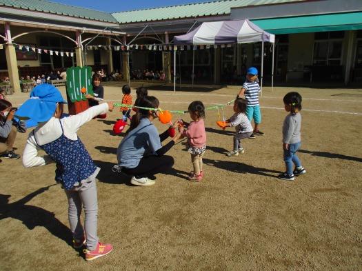 運動会ごっこでゆき組の手伝いをしました。