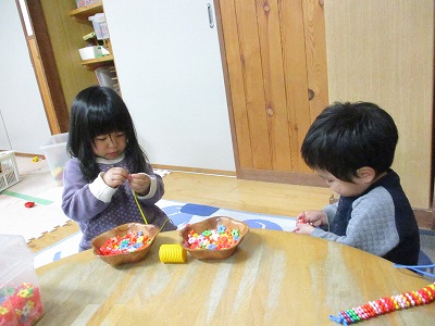 2020年11月05日 ひも通し 2歳児 にじ 夕方、ひも通しをしました。 お花の形をしていたため、「お花」と言いながら嬉しそう。 小さな穴をめがけて、上手に何度も通すことができていました。 これからも指先を使ったあそびを取り入れていこうと思います。 一覧へ戻る