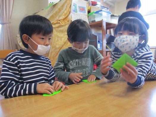 2020年11月06日 ペンダントを折ってみよう 5歳児 そら おでかけ保育に行っているほしぐみさんにプレゼントするため、折り紙でペンダントを折りました。 保育者が見本をみせながらみんなで折りました。 分からないところは友だちに聞いたり、困っている友だちがいると教えてあげたりしながら折っていました。 少し難しかったですが上手に折れ、こどもたちも満足そうでした。 一覧へ戻る