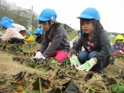 芋の姿が見えてくると、「あ、あったよ」「ここにもある」と力いっぱい掘っていました。