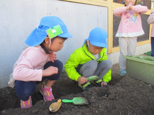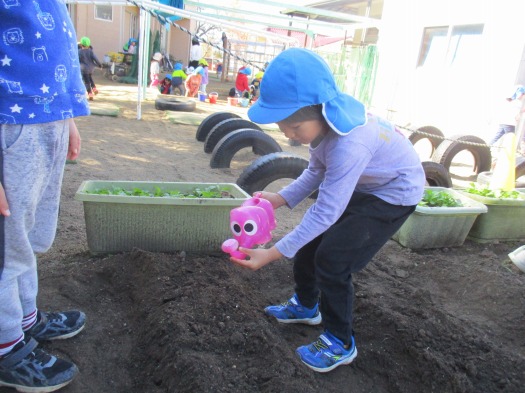 2020年11月16日 種まき 5歳児 そら 畑にブロッコリーの種を蒔きました。 種を手に取ると「ちっちゃいね」と大事そうに持ち、優しく土に埋めていました。 「大きくなってね」「おいしいブロッコリーになってね」と声を掛ける子もおり、収穫を楽しみにしています。 大切に育てていこうね♪ 一覧へ戻る