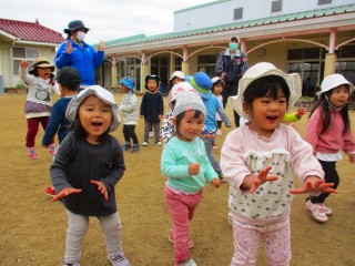2020年11月25日 寒さに負けず 2歳児 にじ 今週に入って日中の気温が下がり、寒くなりました。 外で遊ぶ前に身体を温めようと園庭でダンスや体操。 ちくわ わぁ! とうもろこし し~ 春から何度も踊ってきた『かっぱ体操』や『おやつたーべよ。』を 踊った後、今回初めて『秘伝ラーメン体操』、『どんぐり体操』も 踊ってみると前で踊っている保育者の動きをよく見て すぐにマネして踊っていました。 これからも寒さを吹き飛ばすぐらい元気いっぱい 踊ったり、走ったりして楽しみたいと思います。 一覧へ戻る
