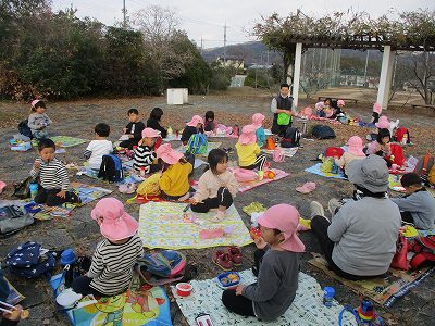 おいしい弁当は、来た道を戻って東4丁目の集会所の付近で食べました。おかずなどが同じ物が入っていると比べっこしていました。弁当の準備ありがとうございました。また、リュックの中には着替えも入れていただきましたが、無事、使うことなく帰れました。次回は3月の予定です。楽しかったので次はどこへ行こうか今から楽しみです。