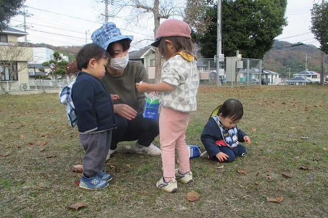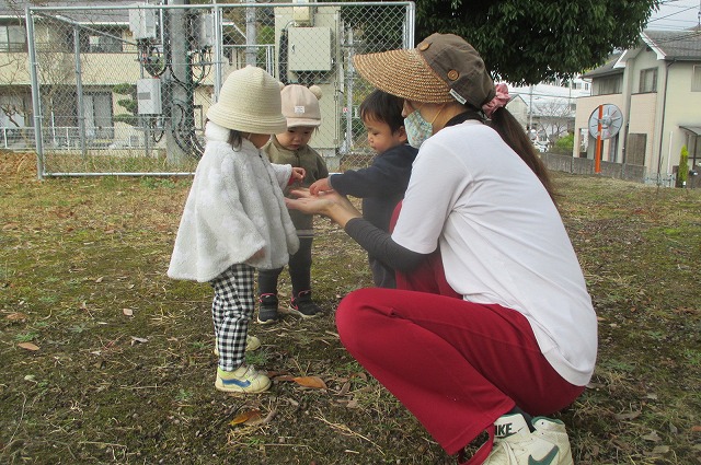 保育者が拾うと、嬉しそうに手にしたり、自分で拾ったりしていました。