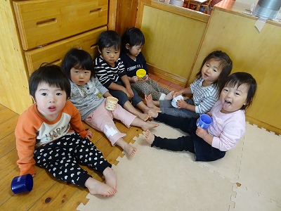 隣りの友だちと目を合わせてニコニコしたり、名前を呼び合ったりする声も聞こえてきます。
