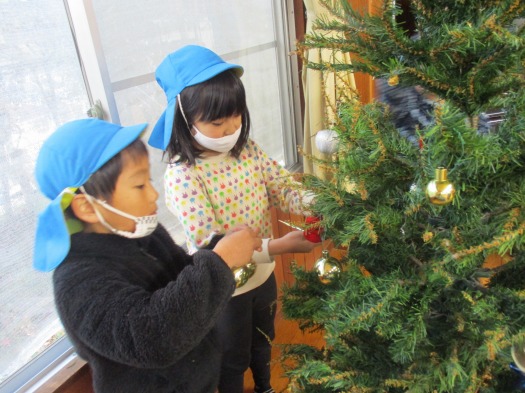 2020年12月17日 クリスマスツリーの飾り付け 5歳児 そら クリスマスツリーの飾り付けをしました。 自分が好きな飾りを選んでツリーに飾りました。 みんなどこに飾るか迷いながら友だちと一緒に楽しそうにしていました。 一覧へ戻る
