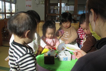 ”これ私の”といわんばかりに、夢中で皿や食べ物を手に入れていました。