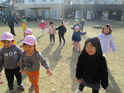 2020年12月18日 だるまさんがころんだ 3歳児 つき 朝がとても寒くなってきましたね。 今日は部屋に入る前に外で遊んで入りました。 だるまさんをしながら部屋へ。 みんなが止まっている瞬間の写真です。 その後、少しずつ近づいて来ますよ。 最後は、鬼(職員)にタッチして、部屋に入りました。 毎日の”楽しい”をどんどん見つけていきたいですね。 一覧へ戻る