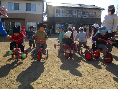 卒輪式が終わった後、にじ組も三輪車はペダルをこいで
