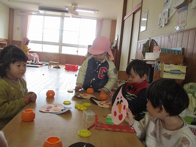 2020年12月23日 もうすぐお正月♪ 3歳児 つき まだクリスマスは来ていませんが、終わってしまうとすぐにお正月ですね。 今日は、ホールに飾る予定の福笑いを作りました。 自分たちで顔の配置を確認しながら作ることができています。 部屋でのりを乾かし中なので、また見てみてくださいね。 一覧へ戻る