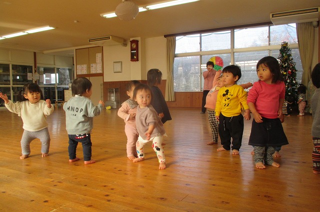 パーティーへ。2クラス一緒にクリスマスソングをききながら、食事を食べました。作った物をお互い物々交換して、大満足のこどもたちでした。