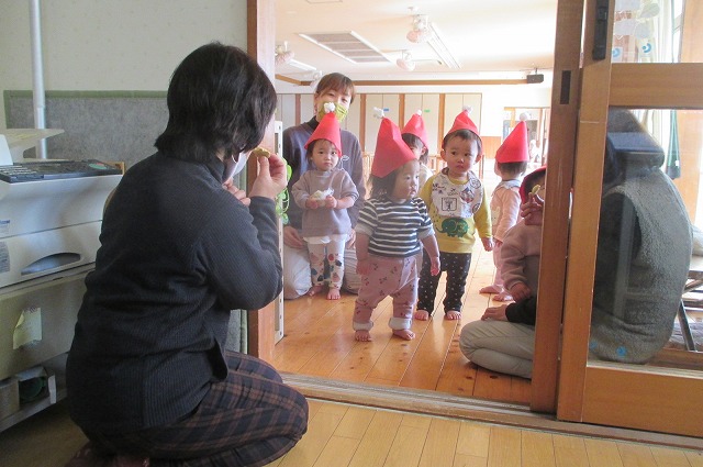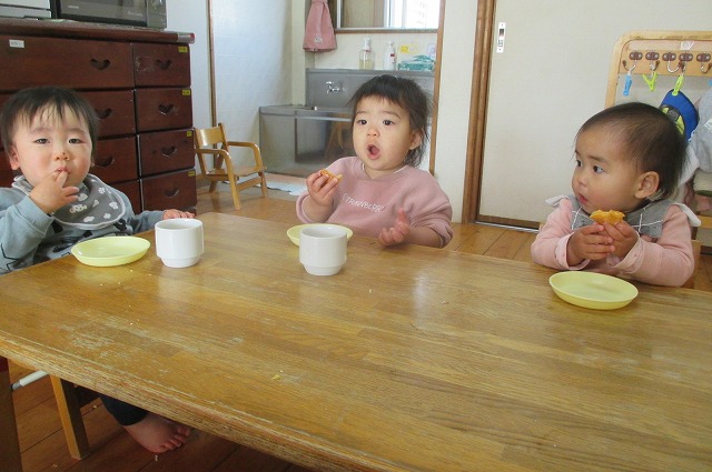 少し早い、クリスマス。はな組が豆苗クッキー、ゆき組がバナナケーキ